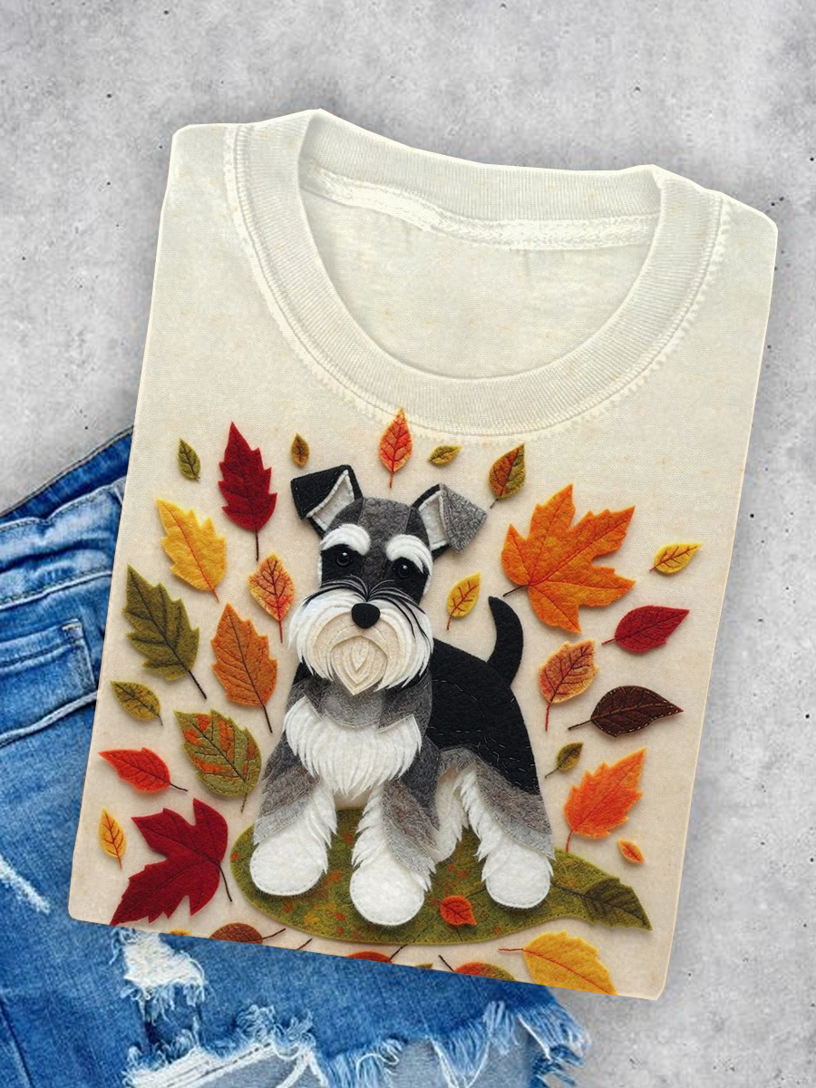 Autumn Dog Print Casual Short Sleeve T-Shirt