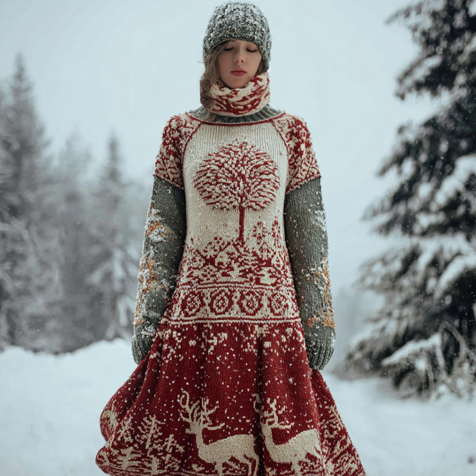 Christmas-themed Winter Warm Women's Knitted Sweater Dress