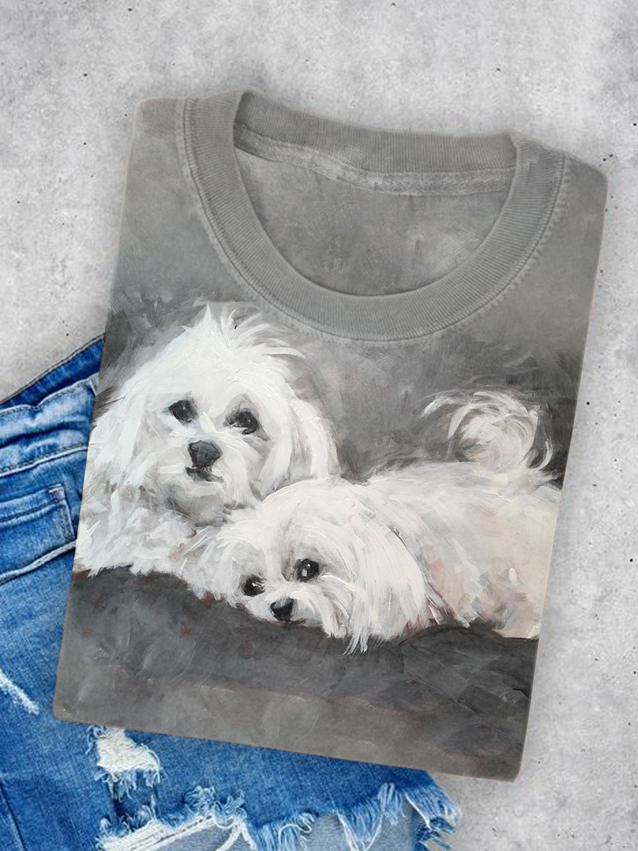 Ctue Dog Print Casual Short Sleeve T-Shirt