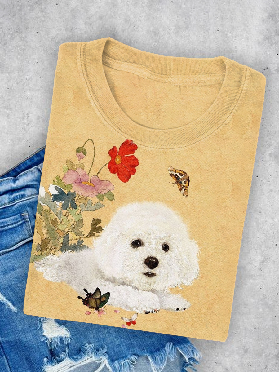 Ctue Dog Print Casual Short Sleeve T-Shirt