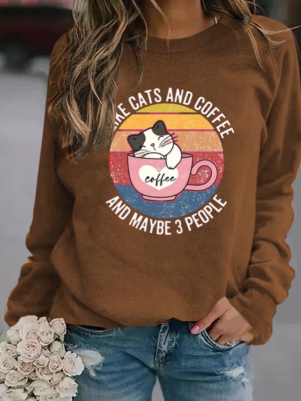 Women's I Like Cats And Coffee Print Casual Sweatshirt